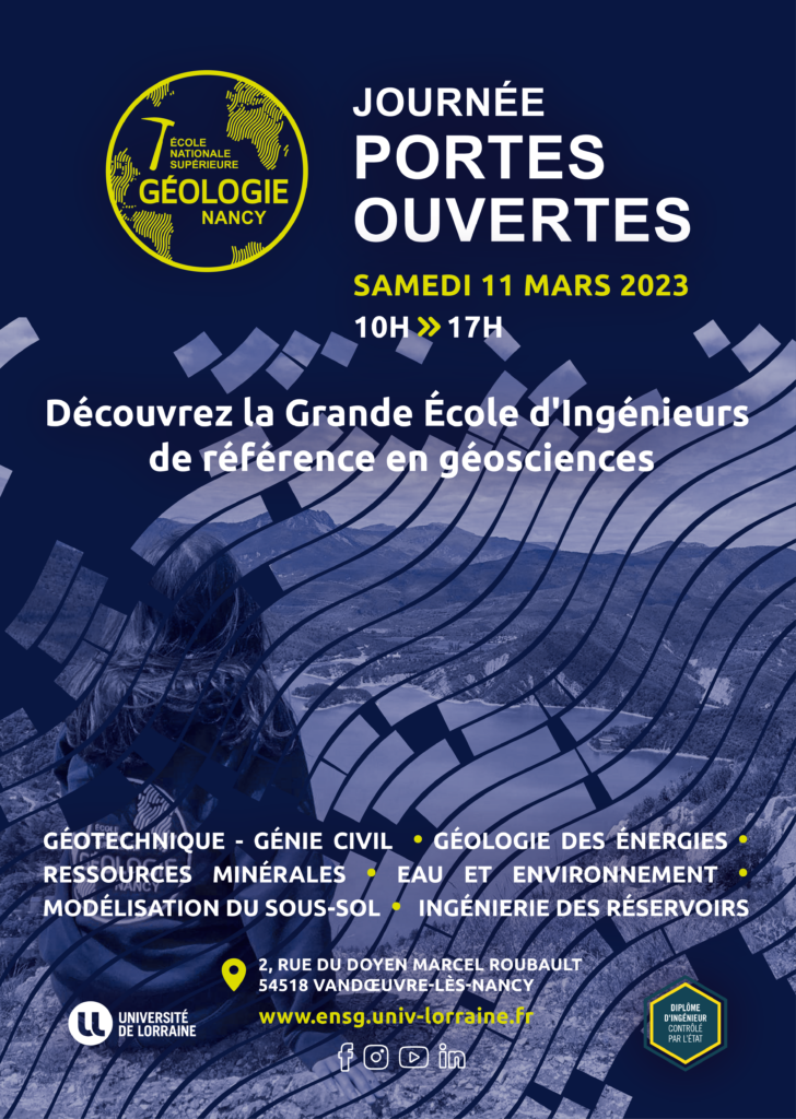 📆 L’École Nationale Supérieure de Géologie t’ouvre ses portes SAMEDI 11 MARS de 10H à 17H.