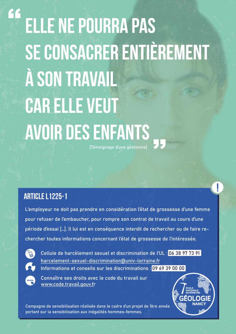 Notre campagne d’affichage tend à sensibiliser et à faire connaître les lois qui nous protègent face aux inégalités des genres. Elle offre ainsi à chacun de nous des moyens d’actions, des aides gratuites et accessibles à tous mais malheureusement trop souvent méconnus.