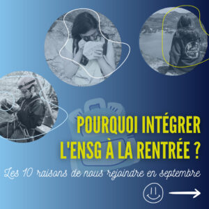 Vie étudiante riche et variée, diversité de métiers et domaines d’activités, stages de terrain….voici une liste (non exhaustive) de 10 bonnes raisons d’ intégrer l’‘ ENSG en septembre !