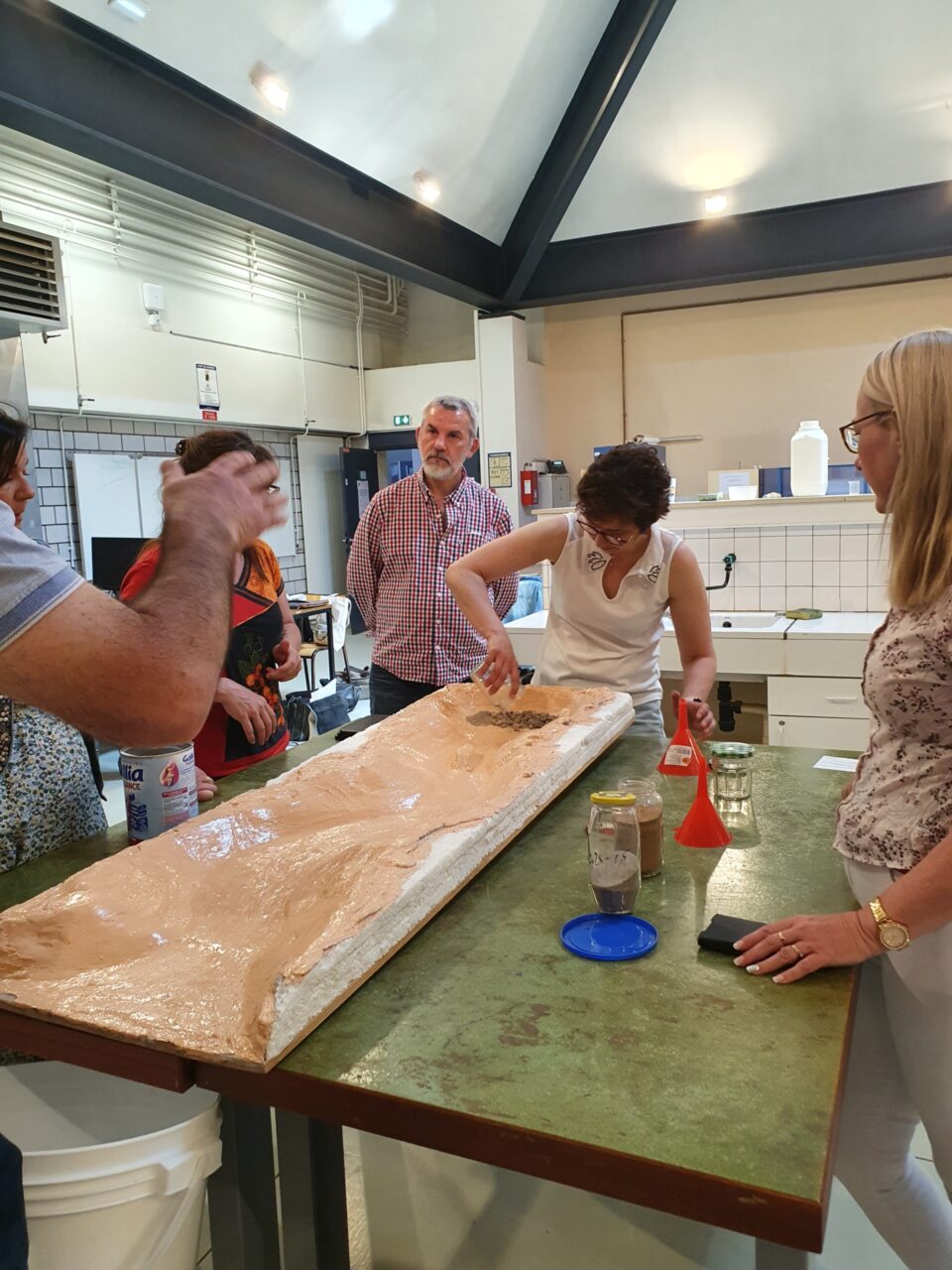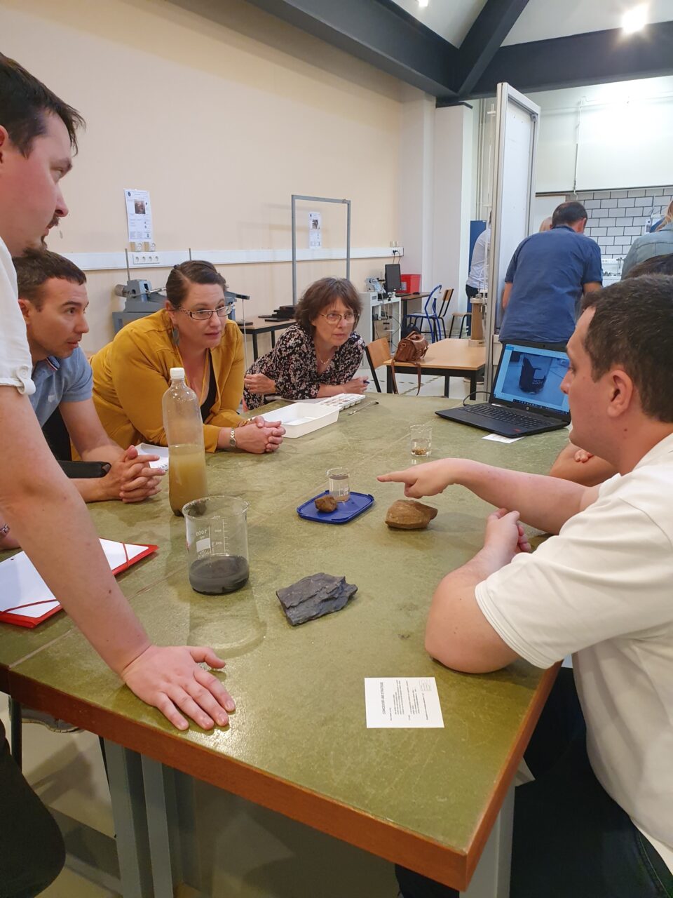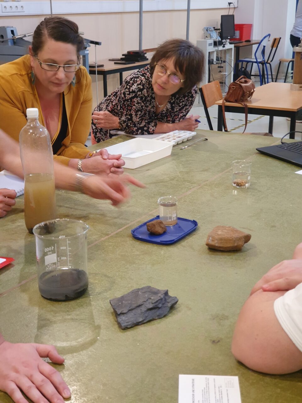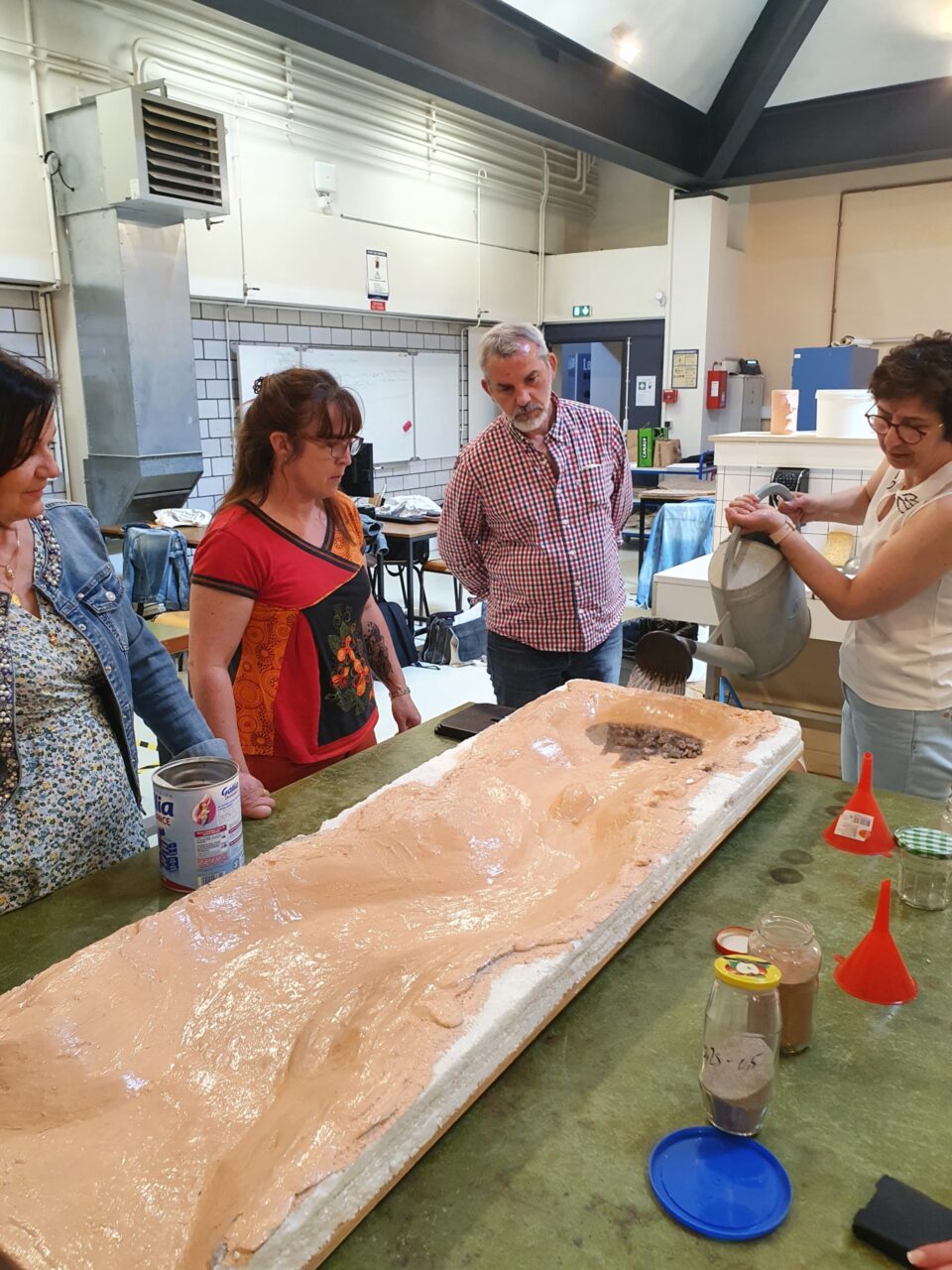 Un programme de deux journées a été établi, avec un jour sur le terrain dans la région de Toul, et un jour dans diverses salles de l’ENSG (avec observations microscopiques, utilisation du banc hydraulique et réalisation d’expériences sur le transport et le dépôt des sédiments). L’observation directe via les activités expérimentales et l’approche terrain a été particulièrement apprécié par la vingtaine d’enseignants participant à cette formation.