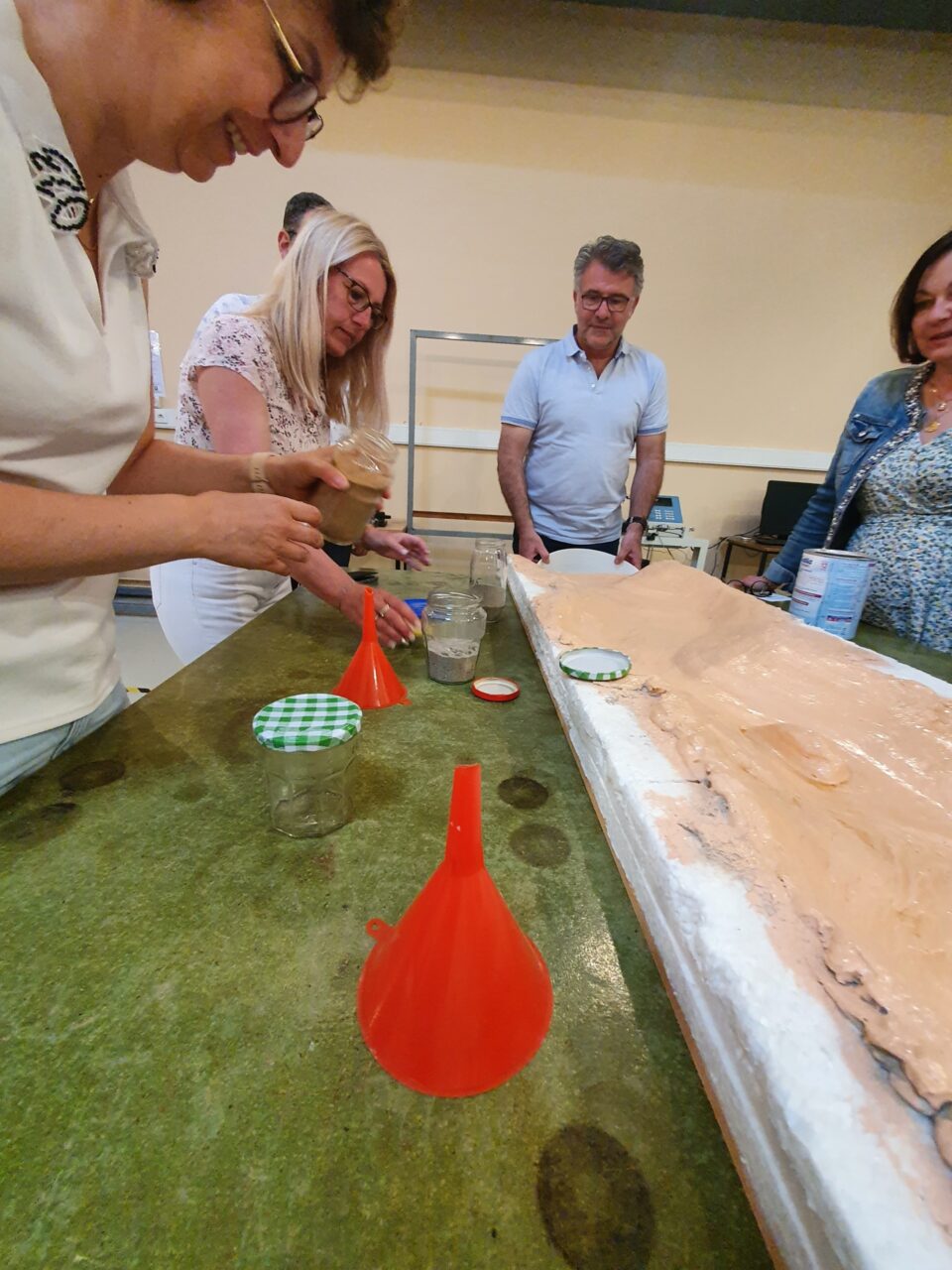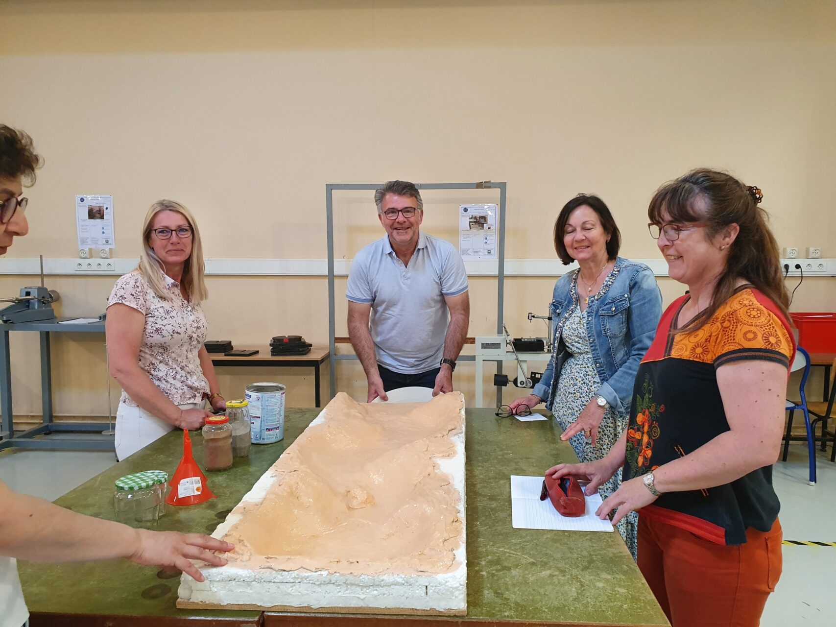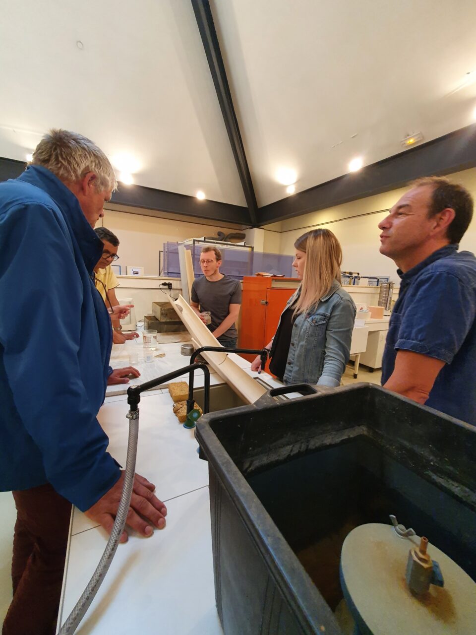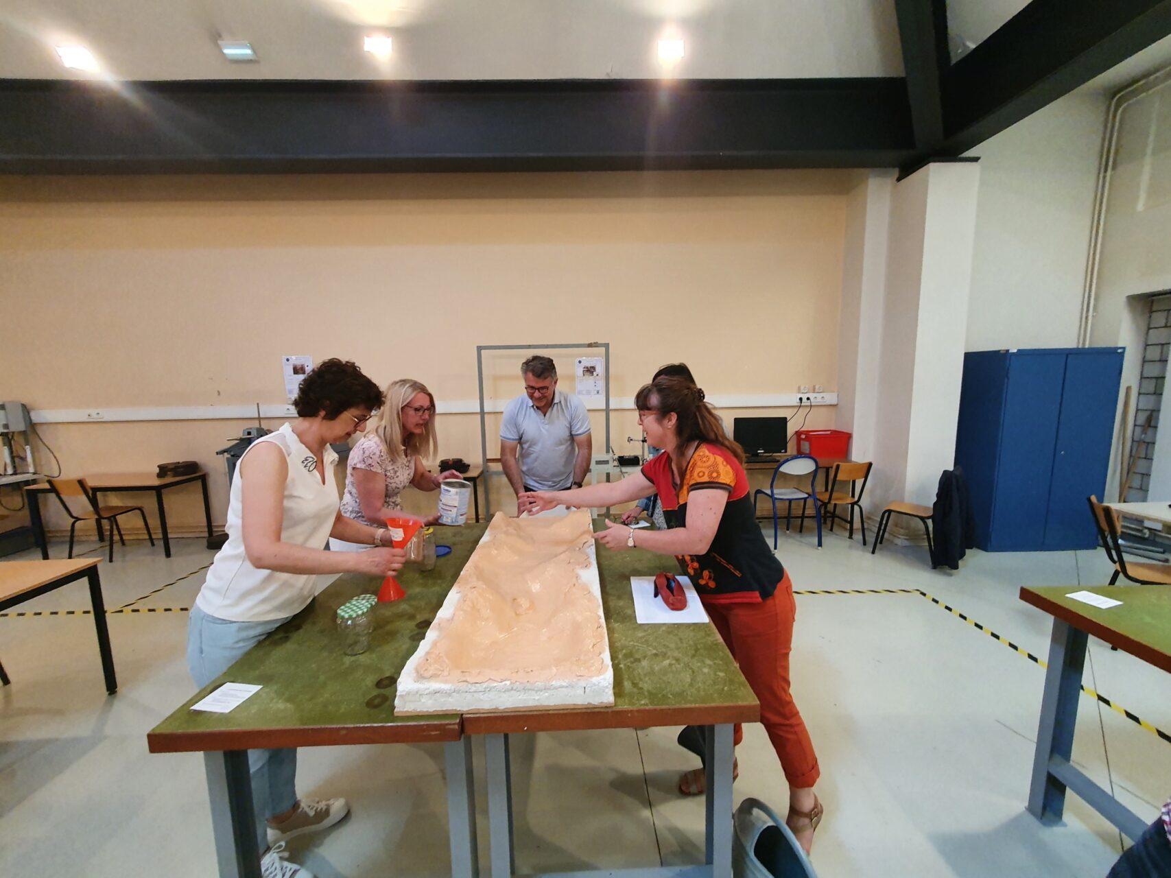 Un programme de deux journées a été établi, avec un jour sur le terrain dans la région de Toul, et un jour dans diverses salles de l’ENSG (avec observations microscopiques, utilisation du banc hydraulique et réalisation d’expériences sur le transport et le dépôt des sédiments). L’observation directe via les activités expérimentales et l’approche terrain a été particulièrement apprécié par la vingtaine d’enseignants participant à cette formation.