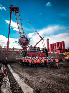 Les étudiants ont ainsi pu observer en action le démarrage du chantier de paroi moulée à la benne hydraulique KS, une technologie de pointe déployée par SOLETANCHE BACHY FRANCE.