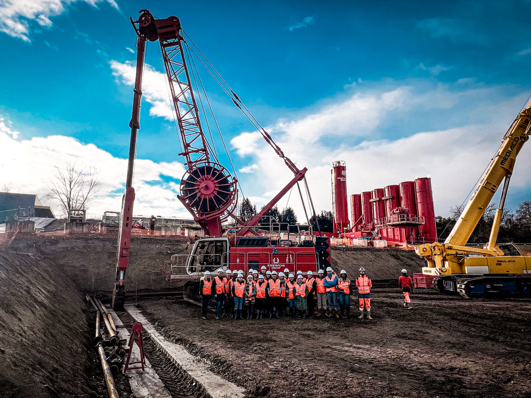 Les étudiants ont ainsi pu observer en action le démarrage du chantier de paroi moulée à la benne hydraulique KS, une technologie de pointe déployée par SOLETANCHE BACHY FRANCE.